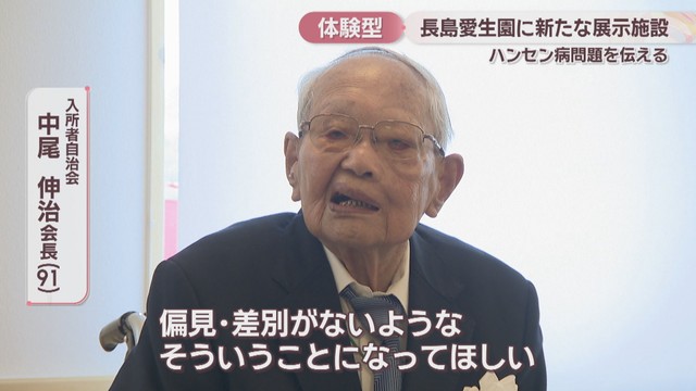 「みなさん方に見ていただけるようになりました。ちょっとほっとしています。語り部もいなくなってきたので目で見て、ハンセン病のことを分かってもらえれば。偏見・差別がないようなそういうことになってほしいなと思います」