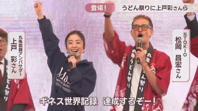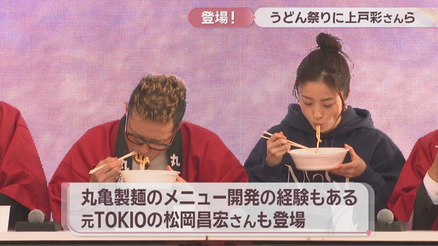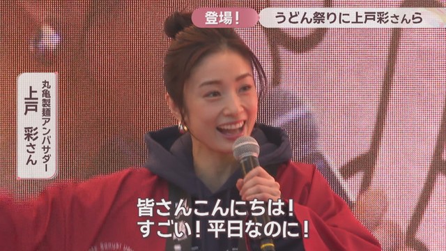 丸亀製麺が21日、創業25周年を記念して丸亀市で「うどん祭り」を開きました。ゲストは、アンバサダーを務める上戸彩さんです!。