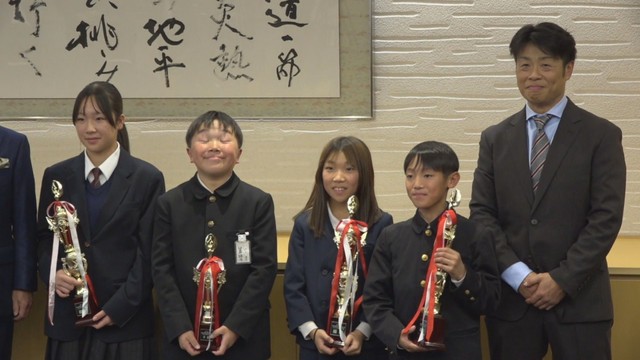 日本拳法の全国大会で活躍した岡山総社道場の小・中学生が21日、総社市の片岡聡一市長を表敬訪問しました。