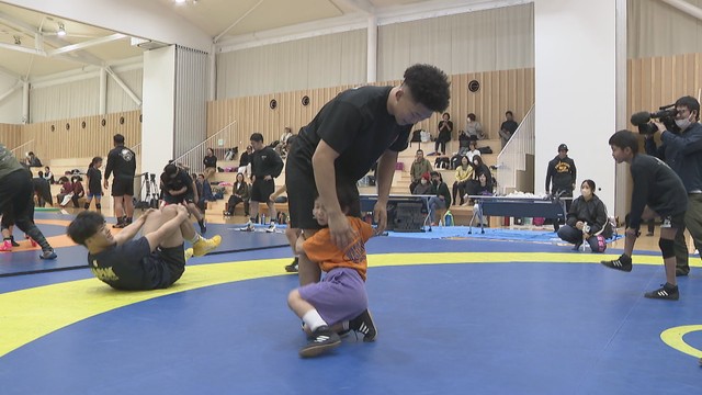 高松市出身でレスリング世界選手権メダリストの日下尚選手と吉田泰造選手が県内の子どもたちと合同練習を行いました。