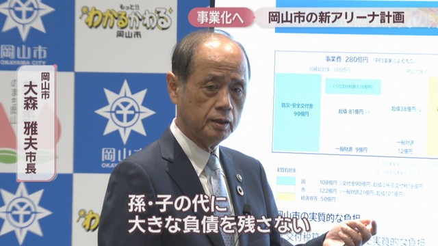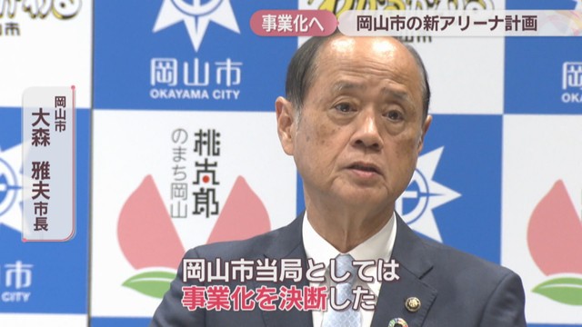 岡山市は北区野田に約280億円をかけて最大1万人規模のアリーナの整備を計画しています。大森市長は25日の会見で、この計画を事業化する方針だと明言しました。