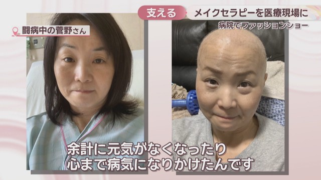「2021年に卵巣がんになったんです。(抗がん剤で)脱毛して顔色もくすんで元気がない自分を見て、余計に元気がなくなったり心まで病気になりかけた。何か自分がもっと元気に見せられるメイクってあるんじゃないかとか、初めは自分のために習ったのがメイクセラピー」
