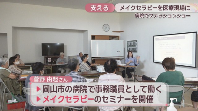 岡山市の病院で事務職員として働く菅野由起さん。メイクを通じて心をサポートする「メイクセラピー」に興味を持ってもらおうと、岡山市を中心にセミナーを開いています。