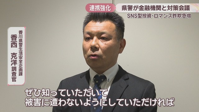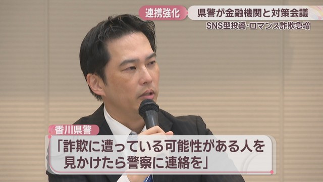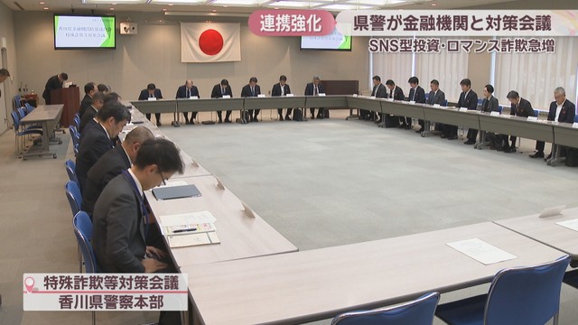 特殊詐欺やSNS型投資・ロマンス詐欺が急増していることを受け、香川県警が金融機関などと詐欺被害防止のための対策会議を開きました。