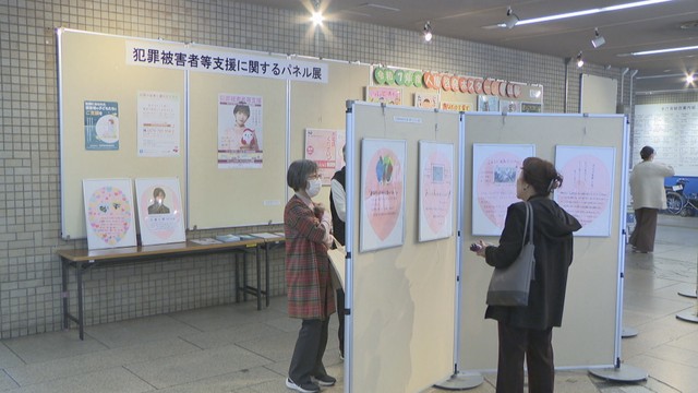 岡山市役所で開かれている犯罪被害に関するパネル展です。被害者やその遺族が支援団体に寄せた手記などを展示しています。
