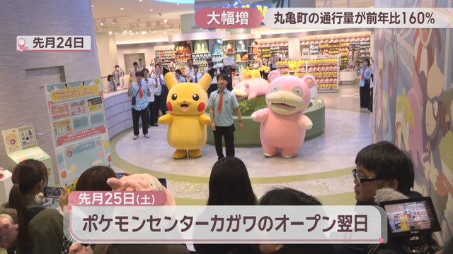 それによると丸亀町商店街の10月25日の午前0時から24時間の通行量は約9万2000人で前年と比べて160%になりました。この日は丸亀町グリーン東館1階に「ポケモンセンターカガワ」がオープンした日の翌日で、土曜日でした。