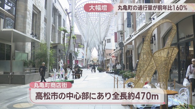 高松市の丸亀町商店街の通行量が、瀬戸内国際芸術祭や、あなぶきアリーナの影響などで前年比160%に伸びたことがわかりました。
