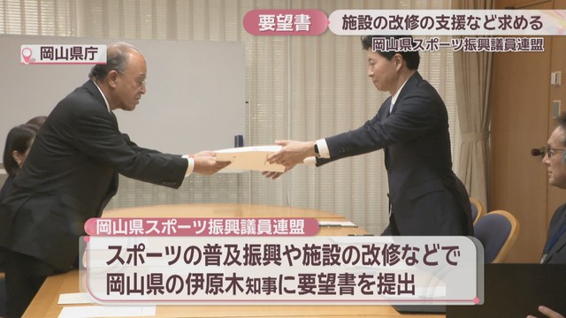 • 体育館の空調設備拡充など求め知事に要望書 岡山県スポーツ振興議員連盟 Play