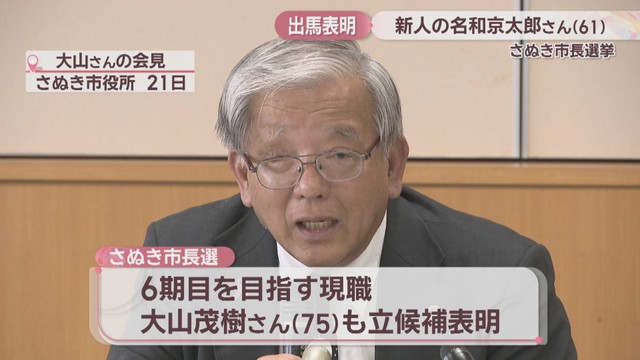 さぬき市長選には6期目を目指す現職の大山茂樹さん(75)も立候補を表明しています。