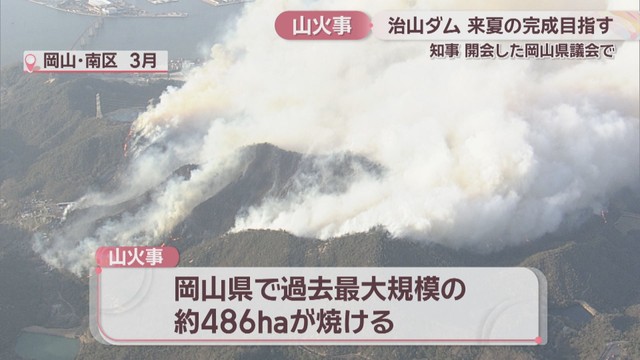 岡山県の伊原木知事は、2025年3月に岡山市で発生した山火事を受けて設置することにしている「治山ダム」について、2026年夏の完成を目指していることを明らかにしました。