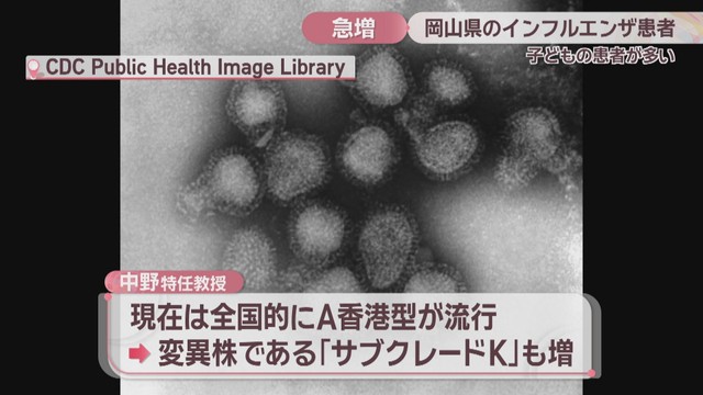 中野特任教授によりますと、現在は全国的にA香港型というタイプが流行していますが、変異株である「サブクレードK」というウイルスへの感染が増えていると指摘しています。