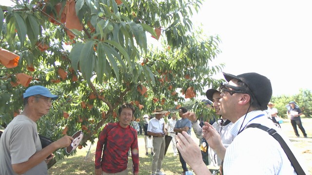 岡山県によりますと、最優秀賞を受賞したのは、センサーで桃を触ると硬さが測定できたり、専用のスマートグラスをかけると袋にかかったままの桃の収穫時期が表示されたりするシステムです。