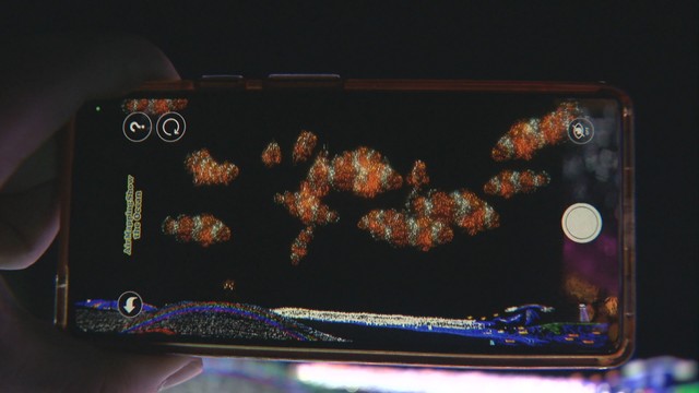 「一面にイルミネーションがあって、普通に見てもとても綺麗なんですが、画面を通してみると空を泳ぐ海の生き物たちの姿も見ることもできるんです」