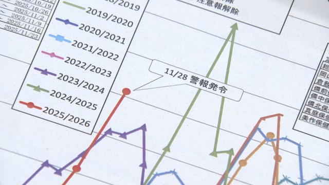 2025年9月以降のインフルエンザ患者の7割以上が14歳以下だということです。岡山県は手洗いやマスクの着用、ワクチンの接種などを改めて呼び掛ける方針です。