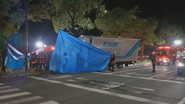 1日午後9時40分ごろ、高松市栗林町の国道11号で大型トラックが中央分離帯の街路樹に衝突しました。