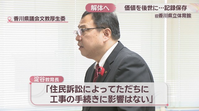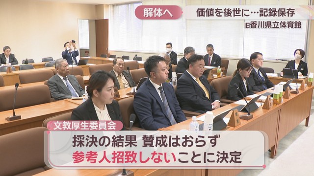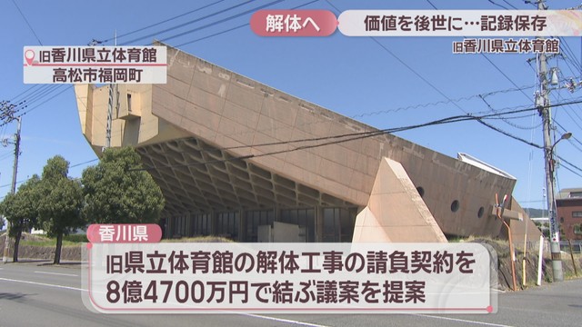 香川県が解体に向けた手続きを進めている旧県立体育館。建物の価値を後世に伝える記録保存の具体的な方法について教育長が2日、県議会に説明しました。