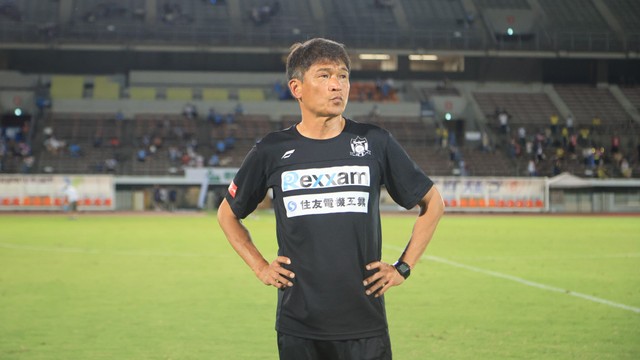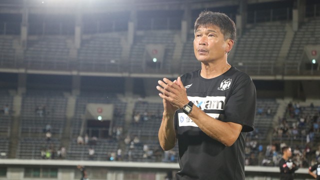 金監督は選手時代に北朝鮮代表に選ばれ、引退後はJ3の鳥取や琉球の指揮を執りました。2025年シーズン、カマタマーレがJ3最下位(4勝5分10敗)に沈んでいた7月8日に監督に就任。得点力を高めて後半戦を6勝3分10敗と巻き返し、17位に浮上させてJ3残留へと導きました。