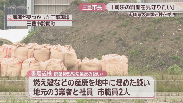 三豊市では、市が発注した造船所跡地の整備工事をめぐり、11月27日、地元の3つの業者と社員、そして市の職員2人が工事で発生した燃え殻などの産廃を地中に埋めたとして廃棄物処理法違反の疑いで書類送検されています。