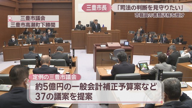 三豊市議会が開会し一般会計補正予算案などが提案されました。三豊市では11月、職員2人が書類送検されていて、議会後に山下市長が「司法の判断を見守りたい」とコメントしました。