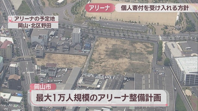 岡山市は、北区野田に最大1万人規模のアリーナの整備を計画しています。事業費は約280億円で、このうち50億円を経済界からの寄付で賄う考えです。
