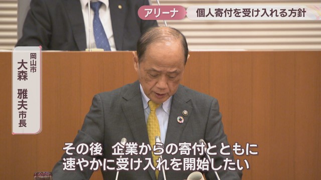 岡山市が計画している新しいアリーナの整備費用について、大森市長が個人から寄付を受け入れる方針を示しました。