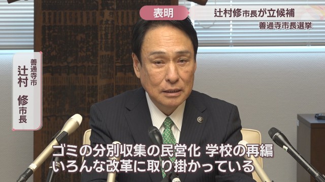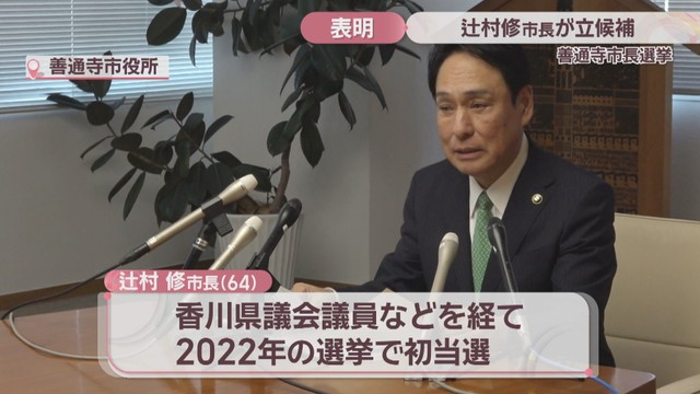 2026年5月に任期満了をむかえる香川県善通寺市長選挙に現職の辻村修市長が5日、立候補を表明しました。