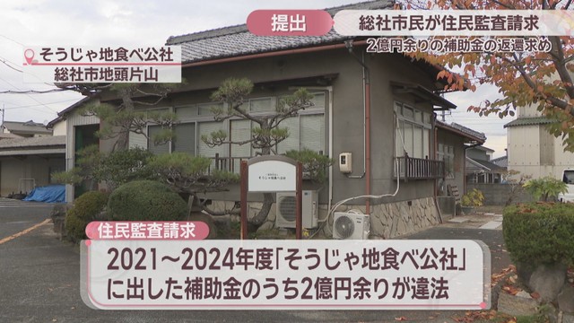 岡山県総社市が市の第3セクター「そうじゃ地食べ公社」に出した補助金の一部が違法なものであるとして、市民が住民監査請求を行いました。