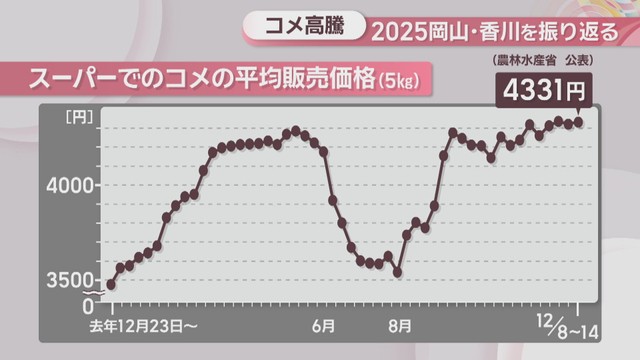 3月にはコシヒカリ5kgの価格について、岡山市が全国で最も高い5252円となるなど、2025年もその価格は高い水準で推移しました。