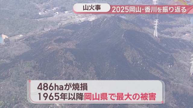 記録が残る1965年以降では岡山県内最大の被害となる486haが焼けた今回の山火事。空き家と倉庫、合わせて6棟に被害が出ましたが、けが人はいませんでした。