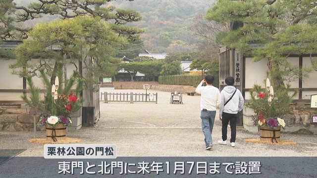 高松市の栗林公園で新年を迎える準備として門松が立てられました。
