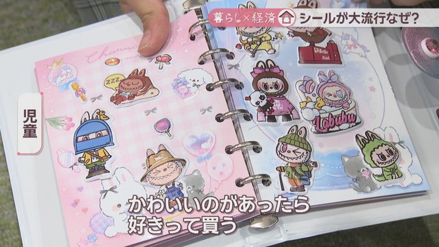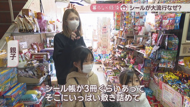 「シール帳が3冊ぐらいあって、そこにいっぱい敷き詰めて。(Q.ご家族で集めている?)そうですね。あったら買う。(Q.どんなところがささる?)私が子どもの頃に流行ってたものだから、それを子どもたちが同じようなのを集めてるから懐かしいなって気持ちで一緒に買ったりしてる」