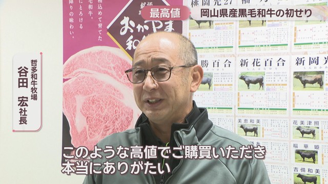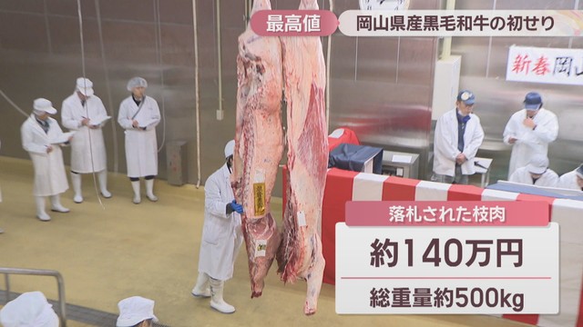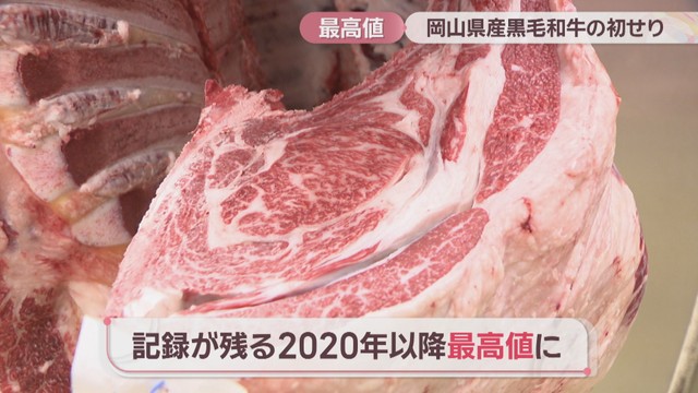 7日、岡山市にある県営食肉地方卸売市場で岡山県産の黒毛和牛の初せりが行われ、1kg当たりの価格が2020年以降で最高値を更新しました。