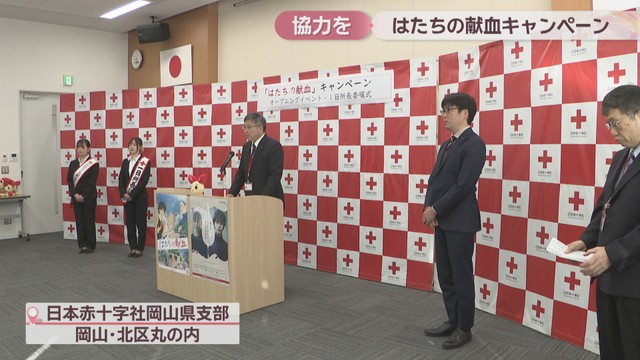 厚生労働省と全国の日本赤十字社は、献血者が減りがちな冬の時期の対策として、1月1日から「はたちの献血キャンペーン」を行っています。8日朝、岡山市でオープニングイベントを開きました。
