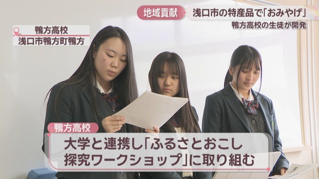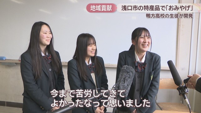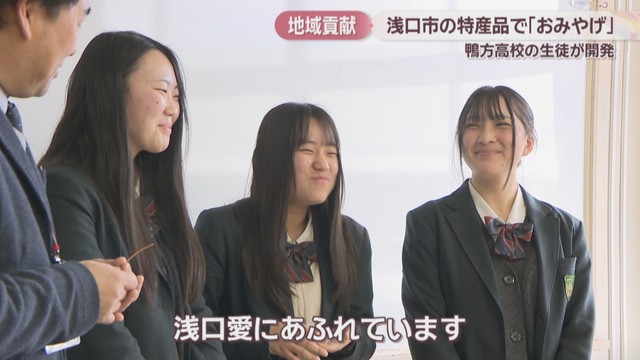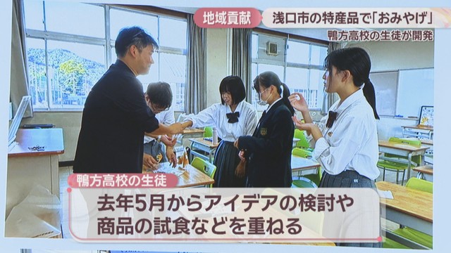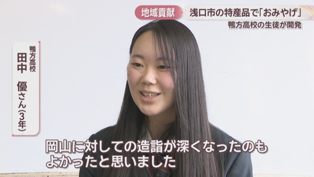 岡山県浅口市の高校生が、地元の特産品を使ったおみやげを開発し、関係者らにお披露目しました。