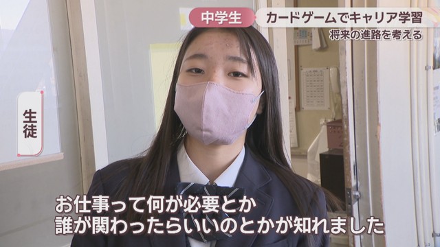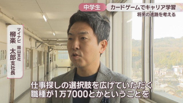 中学生がカードゲームでさまざまな職業について学ぶ出前授業が9日、岡山県倉敷市で行われました。