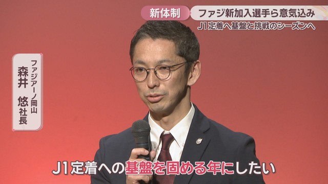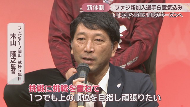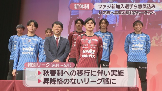 サッカー・J1ファジアーノ岡山が9日、新体制発表会を開き、新加入選手らが今シーズンの躍進を誓いました。