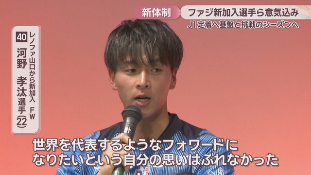 昨シーズン、20チーム中18位タイと苦しんだ得点力アップへ。新加入唯一のフォワード、河野孝汰選手は闘志を燃やしていました。