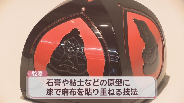 石膏や粘土などの原型に漆で麻布を貼り重ねる「乾漆」という技法で作られています。奈良時代に唐から日本へ伝わり、仏像作りなどに使われてきました。