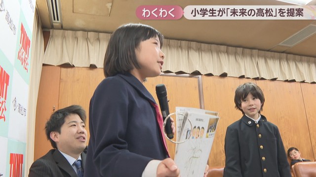高松市の小学生が15日、「未来の高松」を思い描いて作ったまちづくりのアイデアを市長に提案しました。