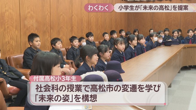 香川大学教育学部付属高松小学校の3年白組の児童は、社会科の授業で高松市の変遷を学び「未来の姿」を考えました。