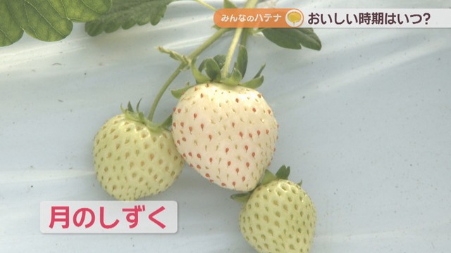 白いイチゴ「月のしずく」は、白いイチゴの中でも甘くておいしい品種ですが、少し青い時に食べるとマスカットのような風味があるということです。
