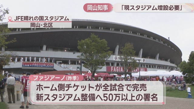 「(新スタジアムが)5年以内にできるということは普通考えられない。今のJFE晴れの国スタジアムについても座席の増設についてやはり必要だろうと考えております」