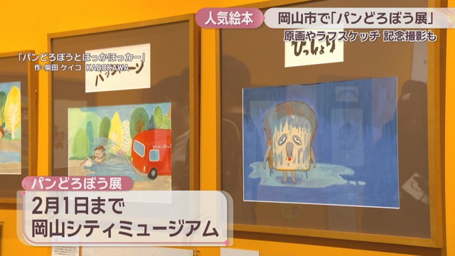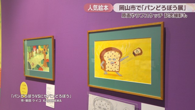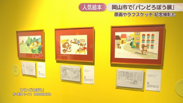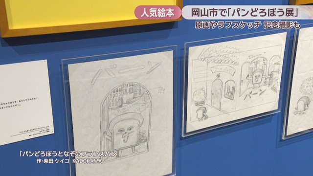 岡山市北区の岡山シティミュージアムでは、絵本作家・柴田ケイコさんが手掛ける人気絵本「パンどろぼう」の原画やラフスケッチ100点以上を展示しています。