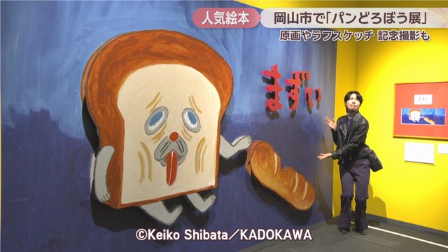 シリーズ累計発行部数500万部の人気絵本、「パンどろぼう」の世界観を体感できる企画展が、岡山市で開かれています。