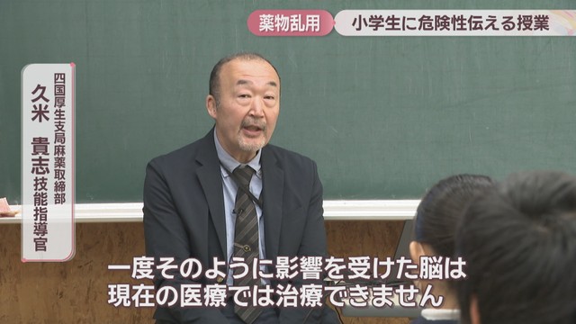 丸亀市の城乾小学校で四国厚生支局麻薬取締部の久米貴志さんが、6年生約20人に違法薬物やその依存性などについて教えました。