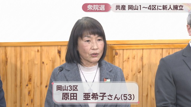岡山3区は共産党美作東備地区委員会の常任委員、原田亜希子さん(53)。
