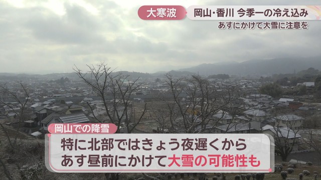 強い寒気の影響で21日朝、岡山・香川では各地で今季一番の冷え込みとなりました。