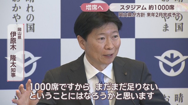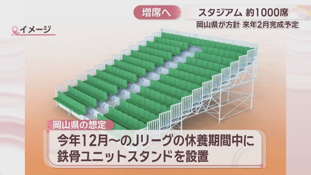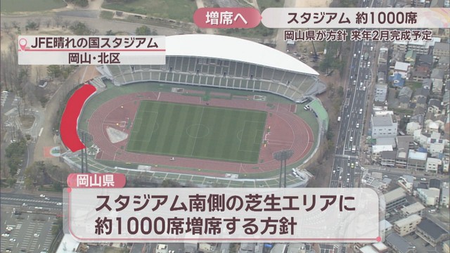 岡山県は、サッカーJ1、ファジアーノ岡山の本拠地、JFE晴れの国スタジアムの観客席を1000席程度増やす方針を決めました。