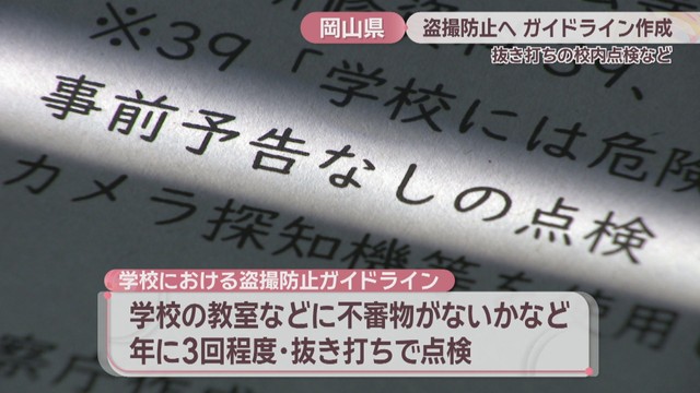 ガイドラインには新たな取り組みとして、学校の教室やトイレなどに不審な物がないかなどの点検を年に3回程度、抜き打ちで行うことが盛り込まれています。