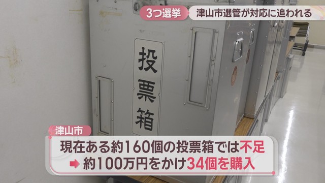津山市が持つ約160個の投票箱では足らないため100万円をかけ34個を購入して対応します。